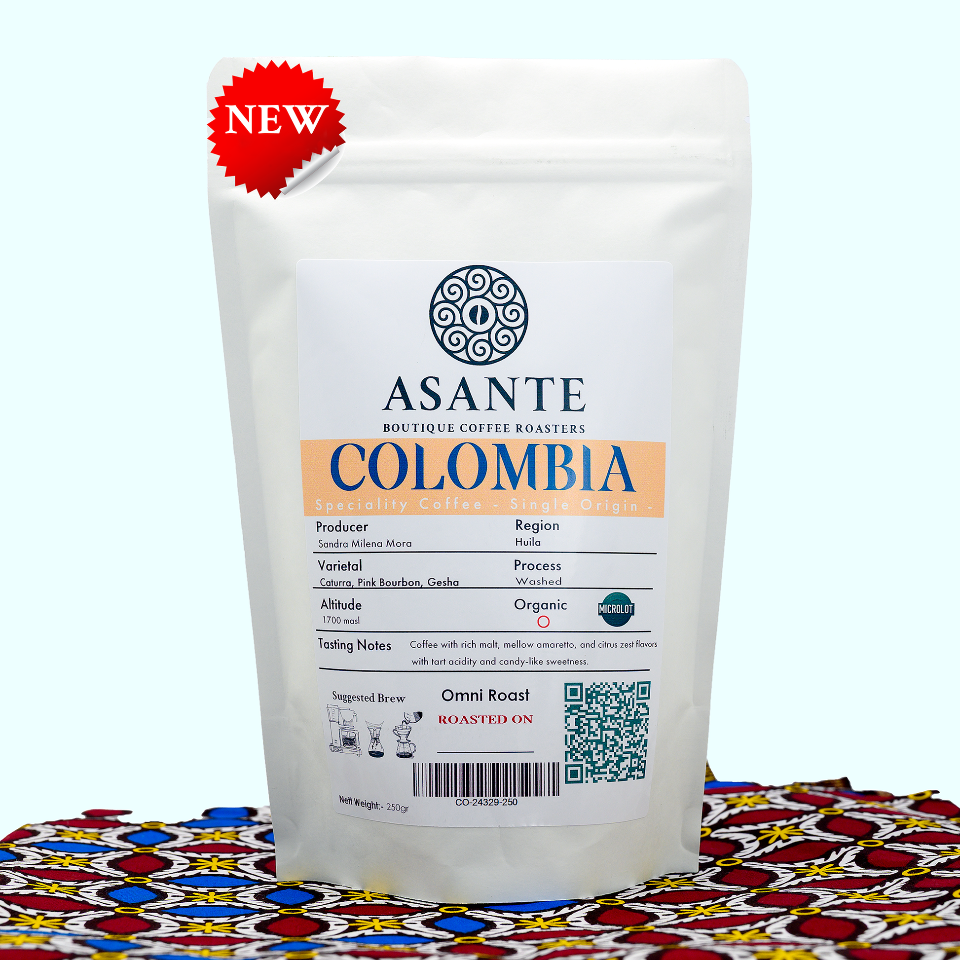 Origem:- Colombia Região:- Huila Produtor:- Sandra Milena Mora Variedade:- Caturra, Pink Bourbon, Gesha Altitude:- 1700m Método de Processamento:- Lavado